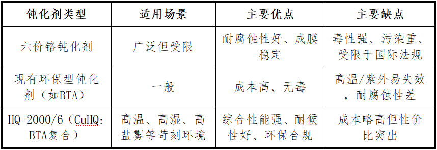 三、HQ-2000/6與主流鈍化劑的對(duì)比分析
