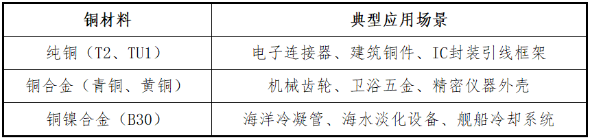 4.1 主要銅材及其典型應(yīng)用
