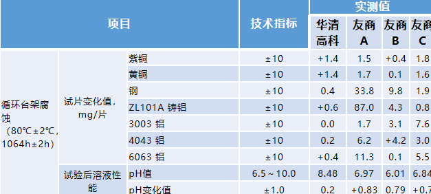 該產(chǎn)品采用非離子型緩蝕劑協(xié)同技術(shù),初始電導(dǎo)率控制在80μS/cm以下,并對紫銅、黃銅、鑄鋁、焊鋁等多種金屬提供全面防護(hù)。