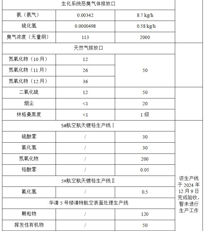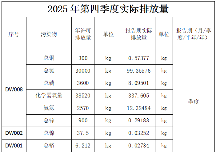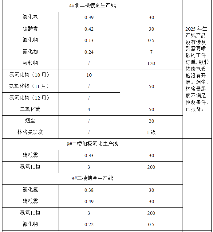 2025年第四季度廢氣排放信息