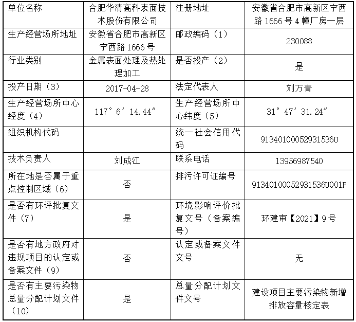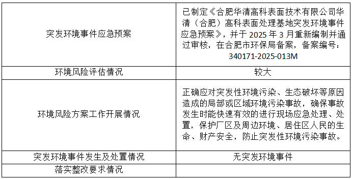 合肥華清高科表面技術(shù)股份有限公司 2025年第四季度信息公開表