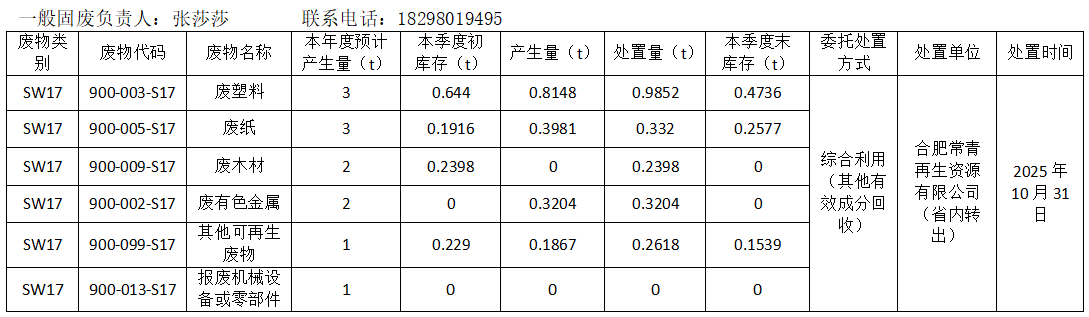 2025年度危險廢物預(yù)計產(chǎn)生量信息