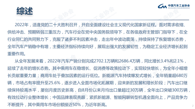 最全PPT看懂中汽協產銷數據:2022年全年銷量2686.4萬輛,增長2.1%;中汽協預計2023年小幅增長3%左右