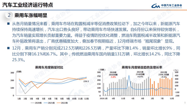 ? 乘用車:12月銷量226.5萬輛,下降6.7\%;全年累計銷量2356.3萬輛,增長9.5\%