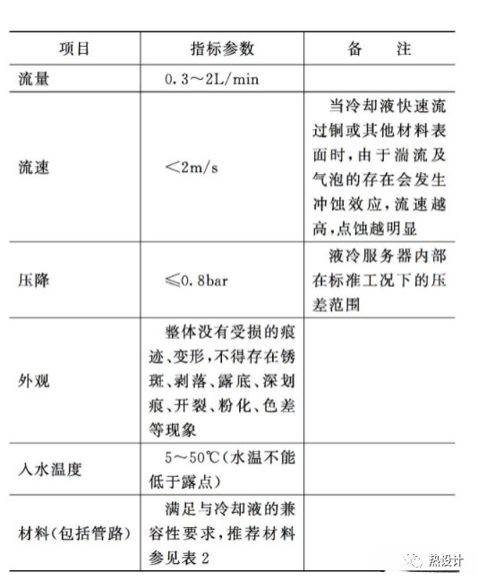 冷板的設計需要考慮可維護性,對于內存等易維護部件,建議做到免工具維護冷板的對外管路接頭為快速接頭,不同的液冷系統,可選擇盲插接頭和非盲插接頭。冷板指標要求見下圖: