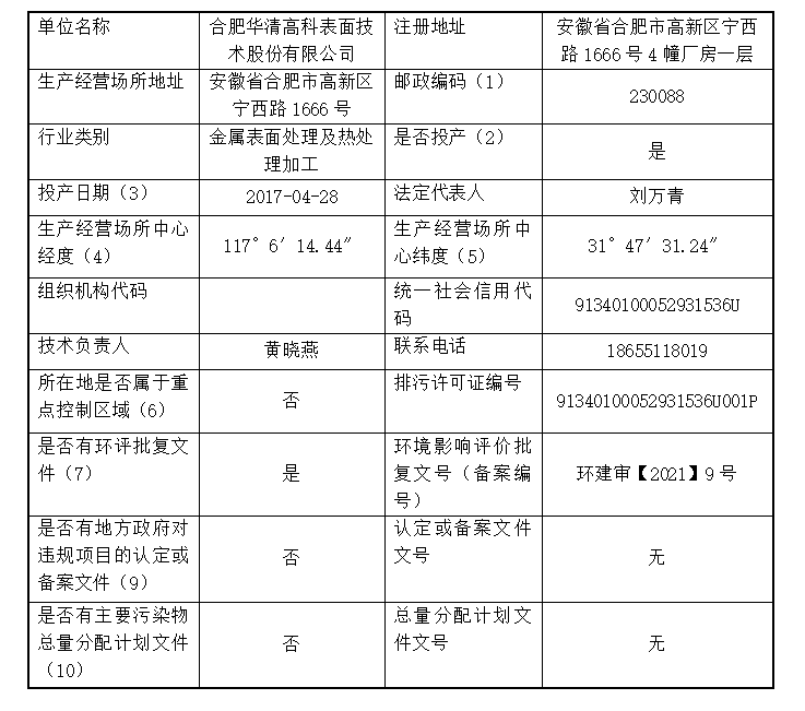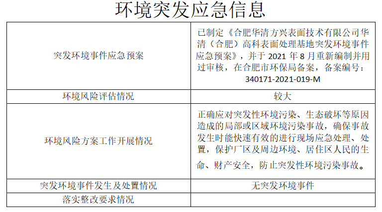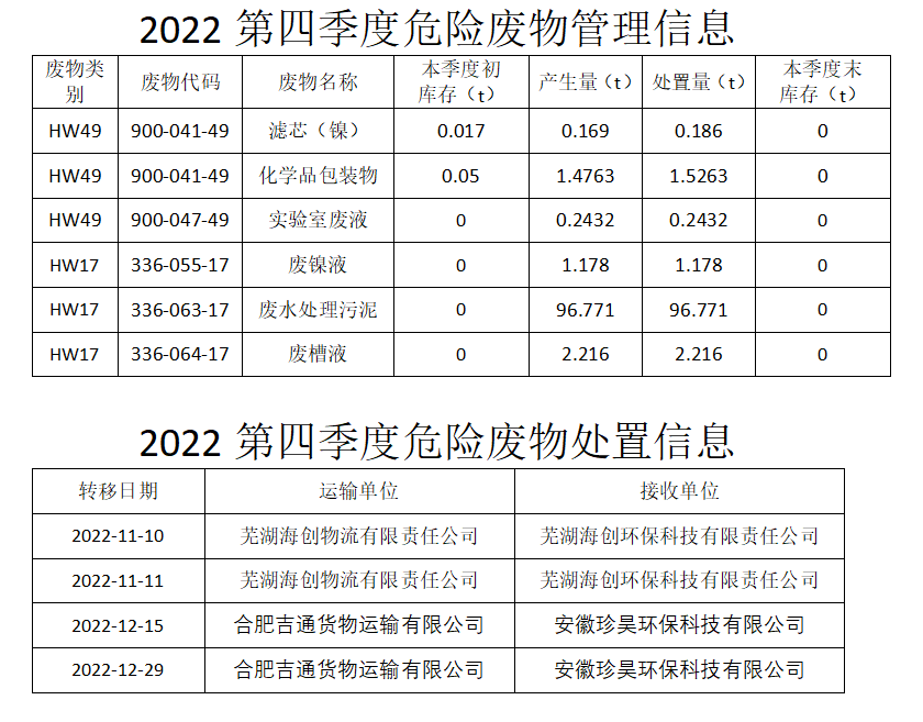 合肥華清海陽表面處理科技有限公司2022年第四季度信息公開表