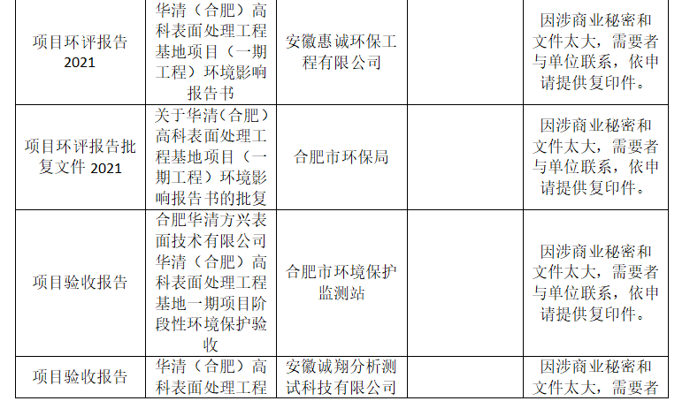 合肥華清高科表面技術股份有限公司 2022年第四季度信息公開表