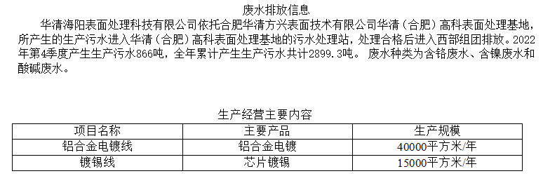 合肥華清海陽表面處理科技有限公司2022年第四季度信息公開表