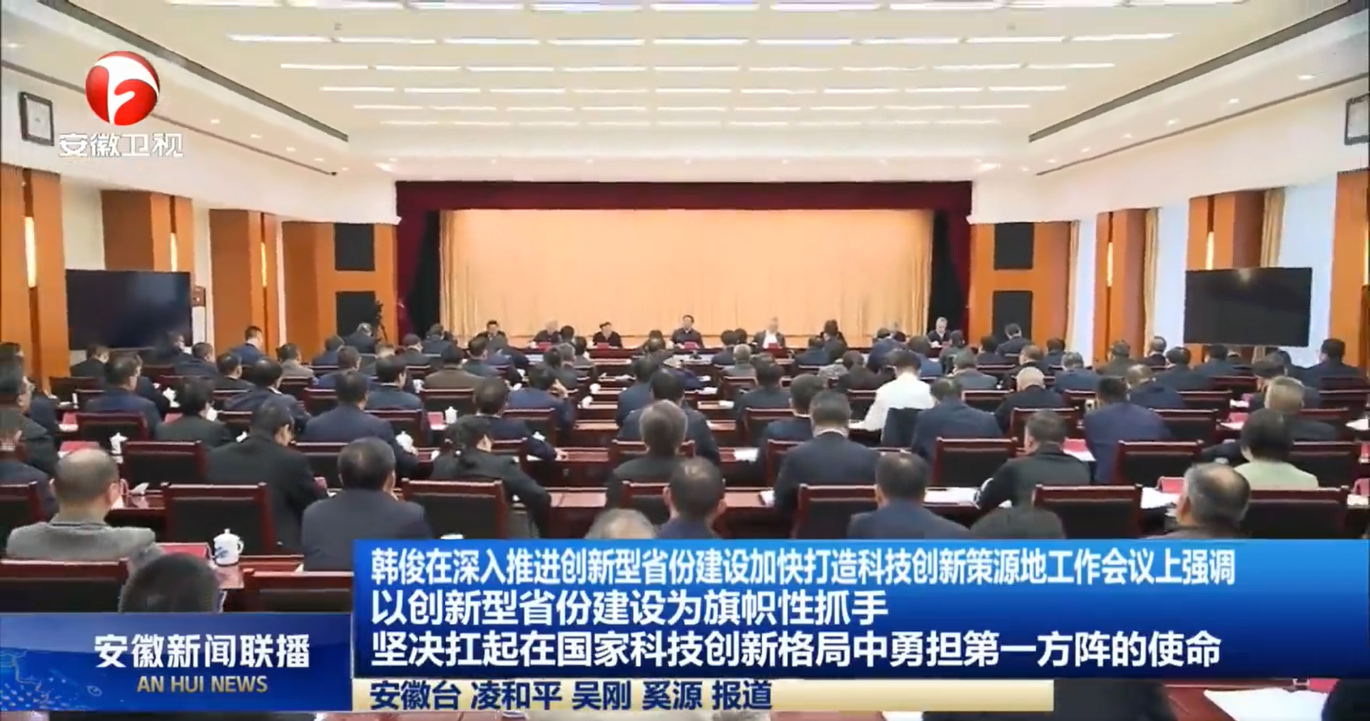 在習近平總書記考察安徽七周年之際,4月24日下午,省委、省政府在合肥召開深入推進創新型省份建設加快打造科技創新策源地工作會議。省委書記韓俊主持會議并講話。他強調,要深入學習貫徹習近平總書記關于科技創新的重要論述和關于安徽工作的重要講話重要指示精神,堅持教育優先發展、科技自立自強、人才引領驅動,以創新型省份建設為旗幟性抓手,加快打造具有重要影響力的科技創新策源地,堅決扛起在國家科技創新格局中勇擔第一方陣的使命,為全面建設現代化美好安徽增添強勁動能,為國家實現高水平科技自立自強貢獻安徽力量。