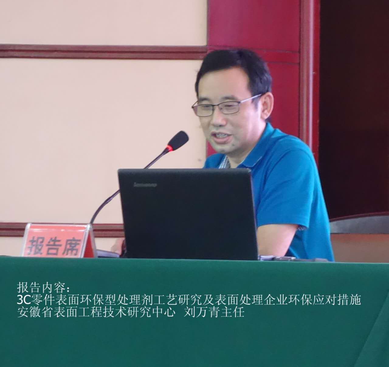 會上,劉萬青副理事長發表了關于3c零件表面環保型處理劑工藝研究的報告,并結合自己豐富的實踐經驗,為參會人員分享了表面處理企業工藝研究中發展的困難以及如何環保準確應對的方法。