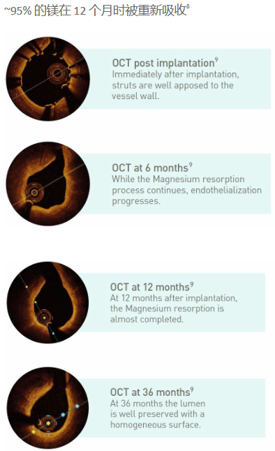相較于聚合物可吸收支架需要2-3年才能完全吸收,Magmaris鎂合金可吸收支架在植入后僅需12個月即可完成95%的吸收。