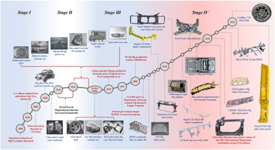 最近,北京科技大學劉波教授課題組總結了汽車零部件用不同系列鎂合金的發展歷程和最新進展。通過分析主機廠(OEM)實際開發生產案例,課題組介紹了鎂合金零部件全流程開發的技術路線,以增強OEM開發新型零部件的信心,這對于從事汽車輕量化研究的企業和廠商具有啟示意義。同時,從國家政策法規、環境能源保護和消費者需求出發,討論了鎂合金材料所面臨的各種挑戰以及克服這些挑戰的方法,并對未來進行了展望。該研究有助于深入了解鎂合金在汽車行業應用方面,促進鎂合金在汽車領域的廣泛應用。