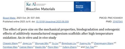 最近,Bioactive Materials期刊上發表了一篇研究論文,合著者包括清華大學的溫鵬教授、北京大學的鄭玉峰教授以及北醫三院的田耘醫生。論文題目為《高溫氧化處理對3D打印鎂合金骨內植入體結構的優化及其體內外生物降解行為的影響》。