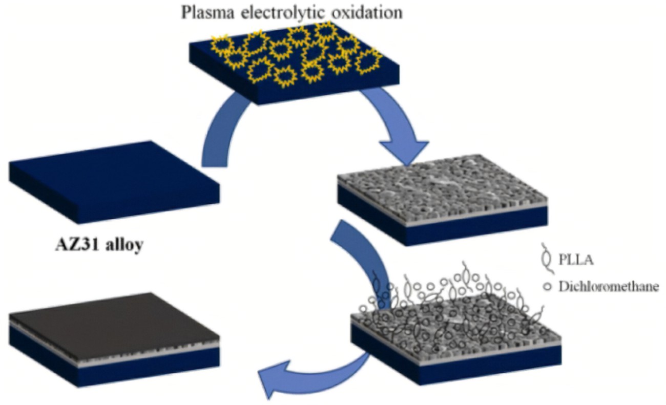 化學(xué)轉(zhuǎn)化涂層具有結(jié)合強(qiáng)度高、成本低、耐腐蝕性好、操作簡(jiǎn)單等優(yōu)點(diǎn),是工業(yè)上應(yīng)用最廣泛的表面處理技術(shù)之一。簡(jiǎn)單地將基板浸入轉(zhuǎn)化槽中,保持一定浸泡時(shí)間,就可以形成附著良好且不溶的結(jié)晶層或無(wú)定形層,以提升防腐性能和對(duì)油漆的附著力。鎂合金表面化學(xué)轉(zhuǎn)化膜的形成過(guò)程如下: