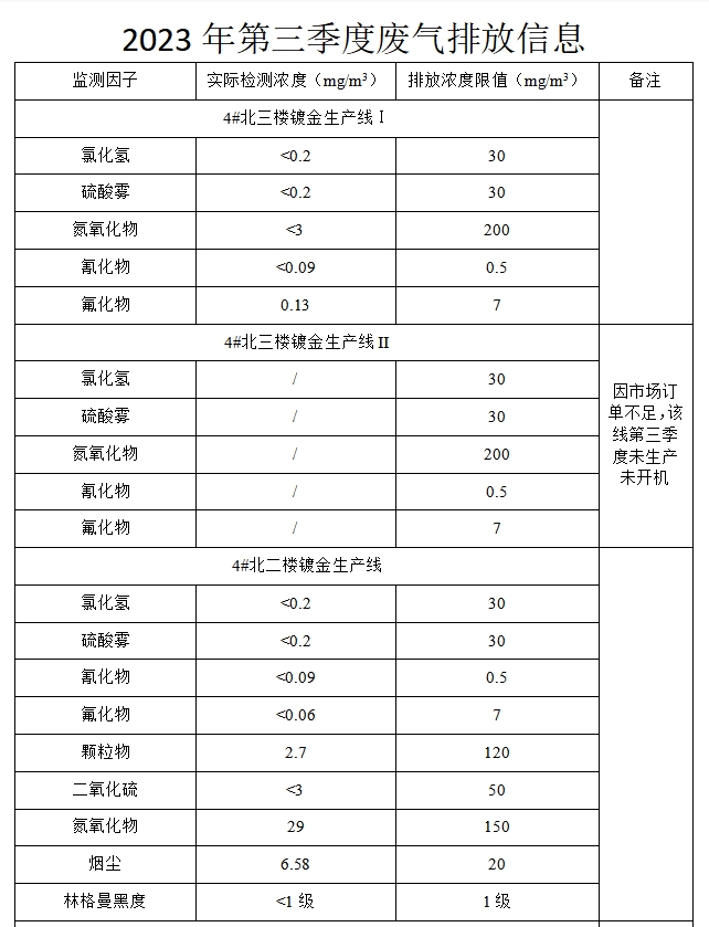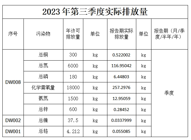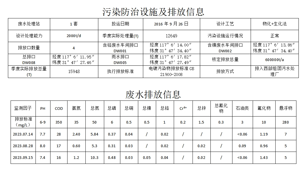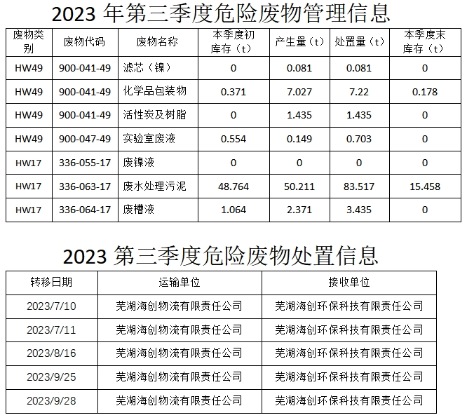 合肥華清海陽表面處理科技有限公司2023年第3季度信息公開表