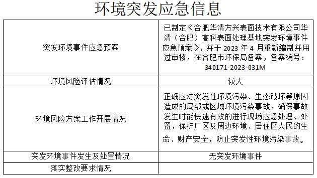 合肥華清海陽表面處理科技有限公司2023年第4季度信息公開表