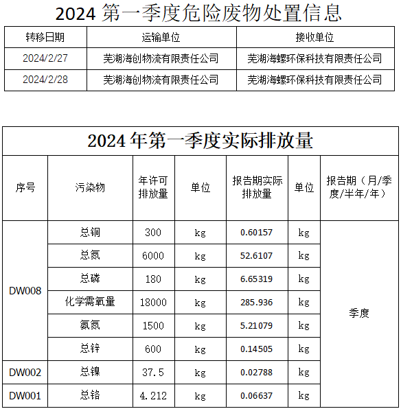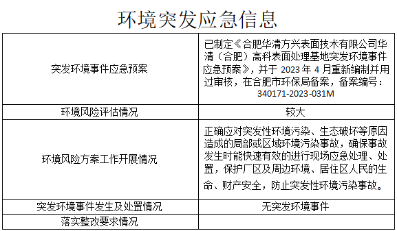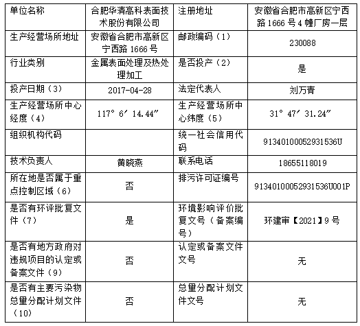 合肥華清高科表面技術(shù)股份有限公司 2024年第一季度信息公開表