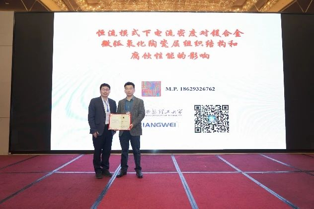 中國機械總院集團武漢材料保護研究所有限公司郭俊灝工程師作了題為《焦磷酸銅對鎂合金微弧氧化陶瓷涂層的外觀與性能的影響》的報告