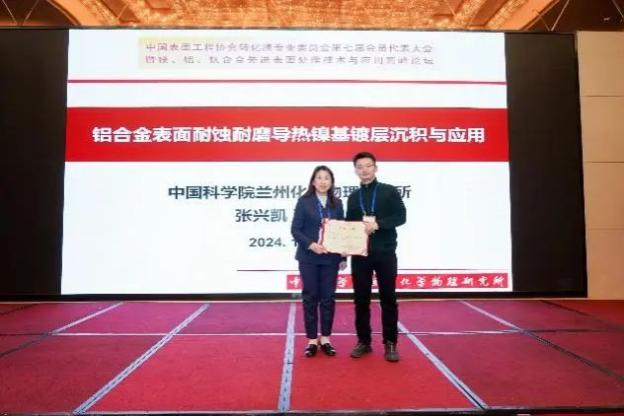 中國科學院蘭州化學物理研究所張興凱副研究員作了題為《鋁合金表面耐蝕耐磨導熱鎳基鍍層沉積與應用》的報告