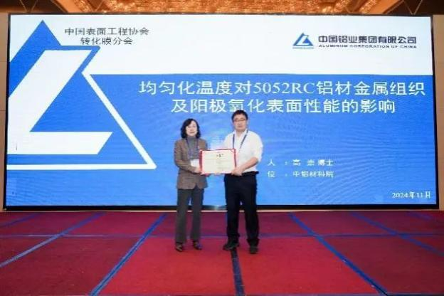 中鋁材料應用研究院有限公司高崇高級工程師作了題為《5xxx 系鋁合金均勻化工藝對陽極氧化的影響及陽極氧化壓鑄件現狀及展望》的報告