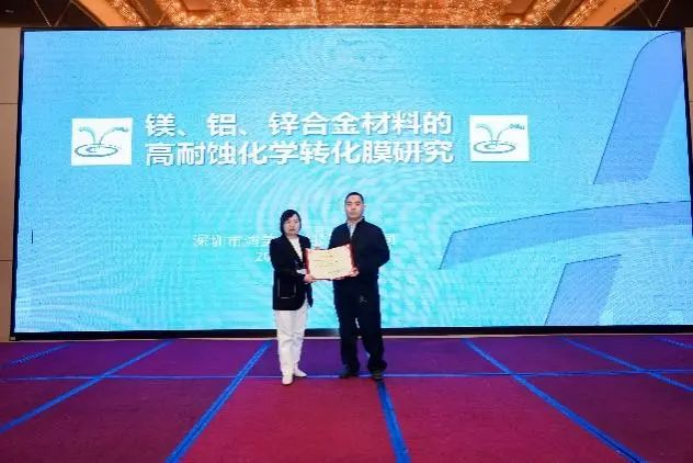 深圳鴻美特科技有限公司劉彥明總經理作了題為《鎂、鋁、鋅合金材料的高耐蝕轉化膜研究》的報告