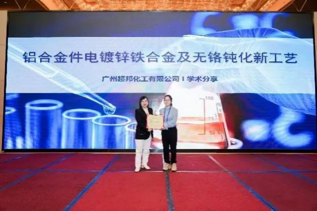 廣州超邦化工有限公司李小花工程師作了題為《鋁合金工件電鍍鍍鋅鐵合金及硅烷無鉻鈍化新工藝》的報告