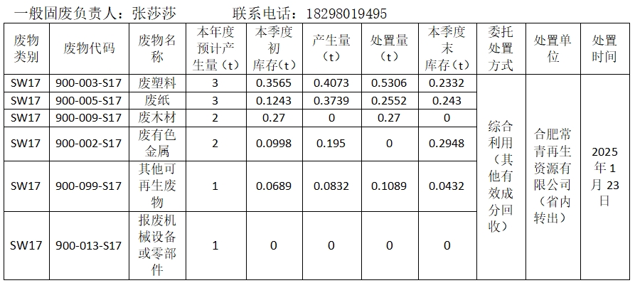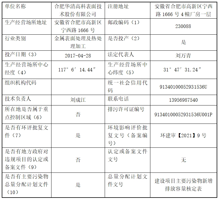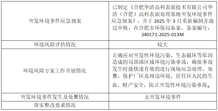 合肥華清高科表面技術股份有限公司 2025年第一季度信息公開表