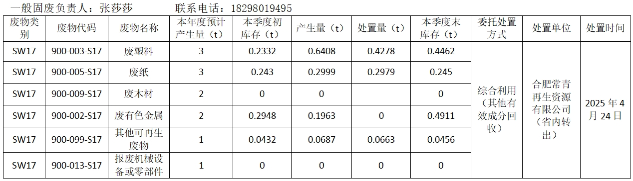 2025年第二季度一般固廢產生、貯存和利用處置情況