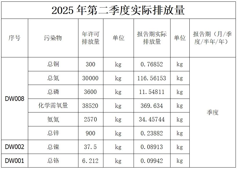 2025年第二季度廢氣排放信息